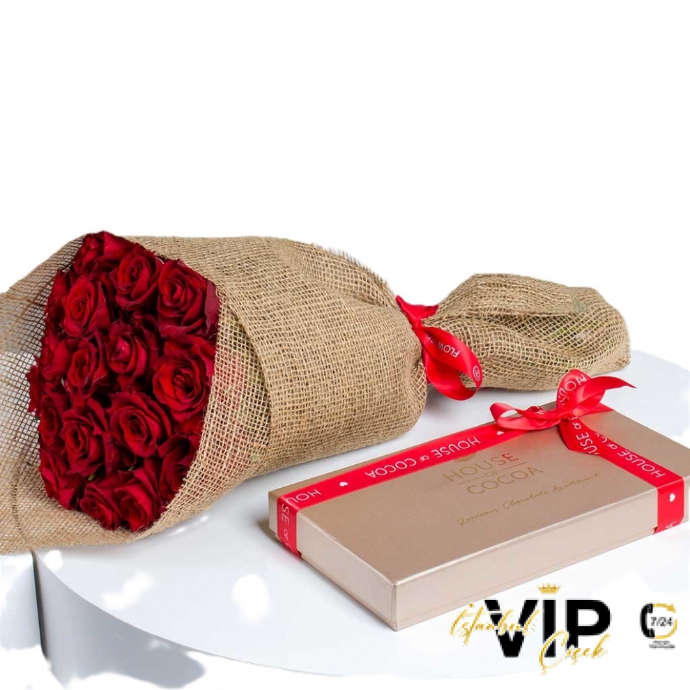 25 ADET KIRMIZI GÜLLERDEN OLUŞAN NATUREL BUKET VE SÜRPRİZ ÇİKOLATA KUTUSU İLE BİRLİKTE GÖNDERİM YAPILMAKTADIR